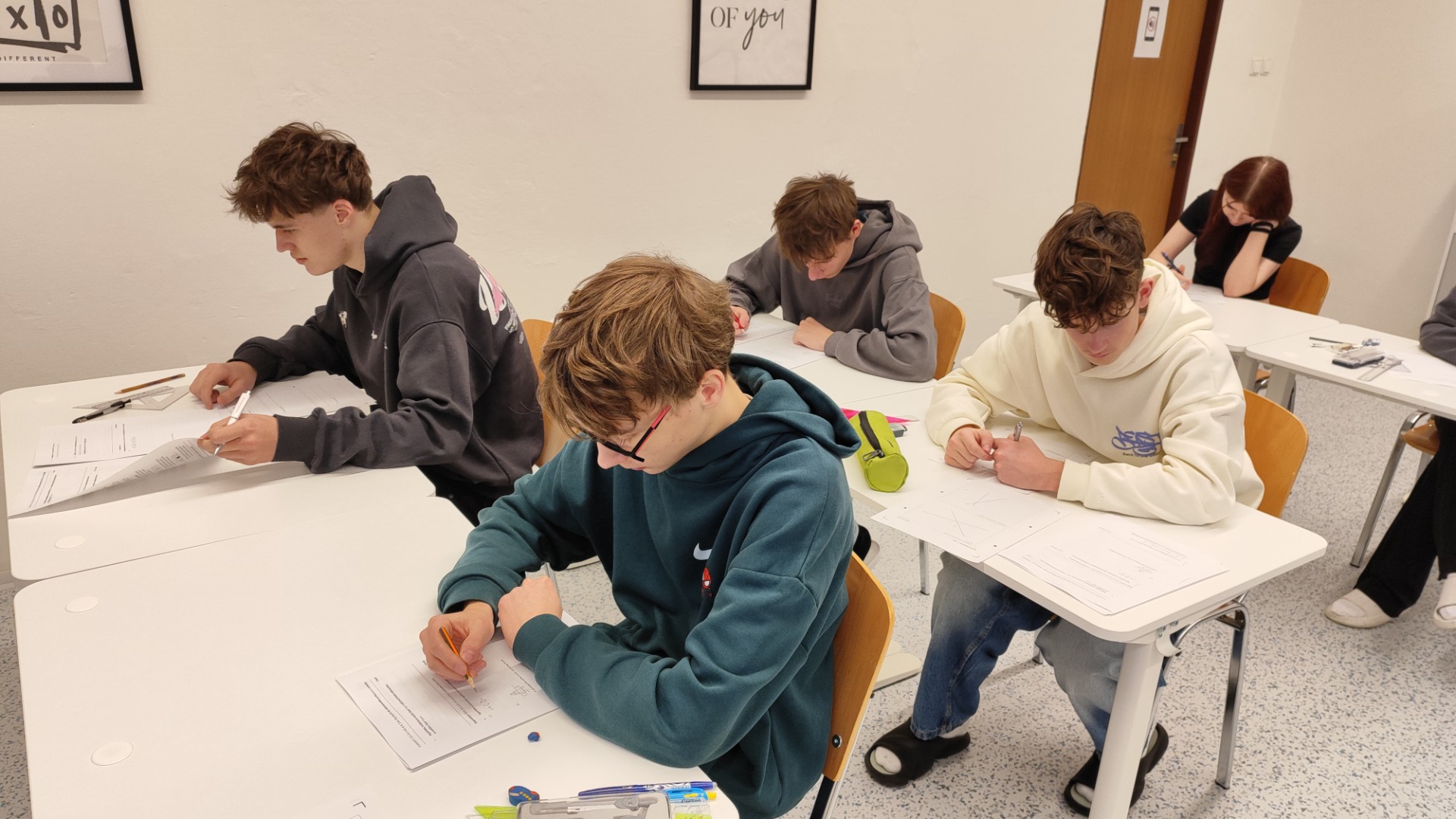 V dnešní hodině matematiky si žáci 9. B vyzkoušeli již pátý cvičný test společnosti CERMAT, a to v plném časovém limitu, stejně jako u skutečných přijímacích zkoušek. Opět si tak mohli prakticky potrénovat nejen samotné řešení úloh, ale také práci se záznamovým archem a efektivní rozvržení času během testu.