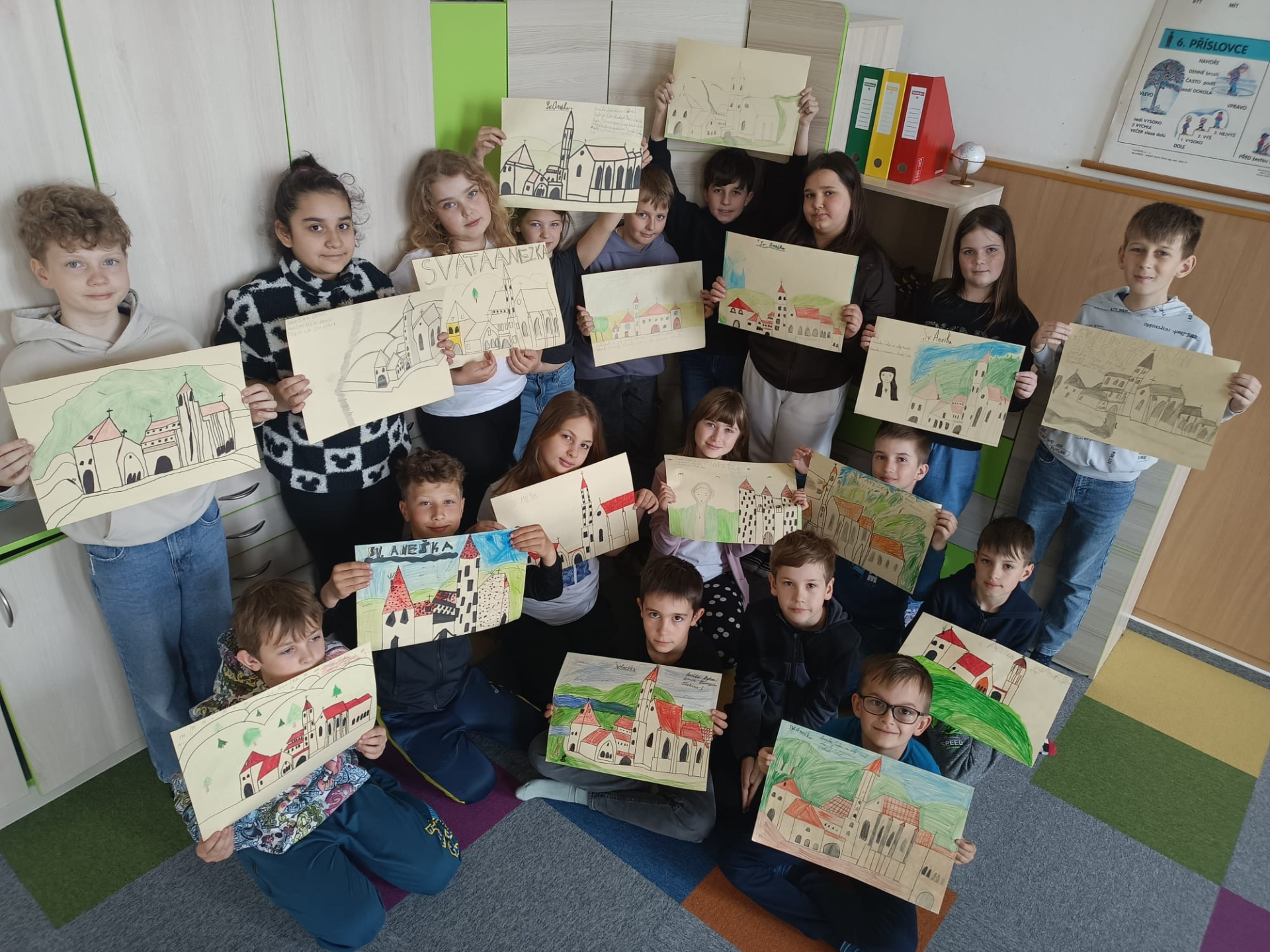 Žáky 4. B baví dějiny. Rádi zkoumají a objevují nové informace o minulosti. Tyto poznatky následně ztvárňují výtvarně a velmi se jim to daří. Společně si pomáhají a spolupracují.