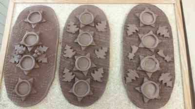 Pro zvýraznění povrchové struktury se inspirovaly okolním světem - zbytky záclon, krajky a přírodní listy vytvořily na jejich výtvorech zajímavé dekory. Vznikly tak nejen misky, ale i keramické svícny, které budou k prodeji na vánočním jarmarku 12. 12. Těšit se tak můžete na originální výrobky, které si rozhodně nesmíte nechat ujít!
