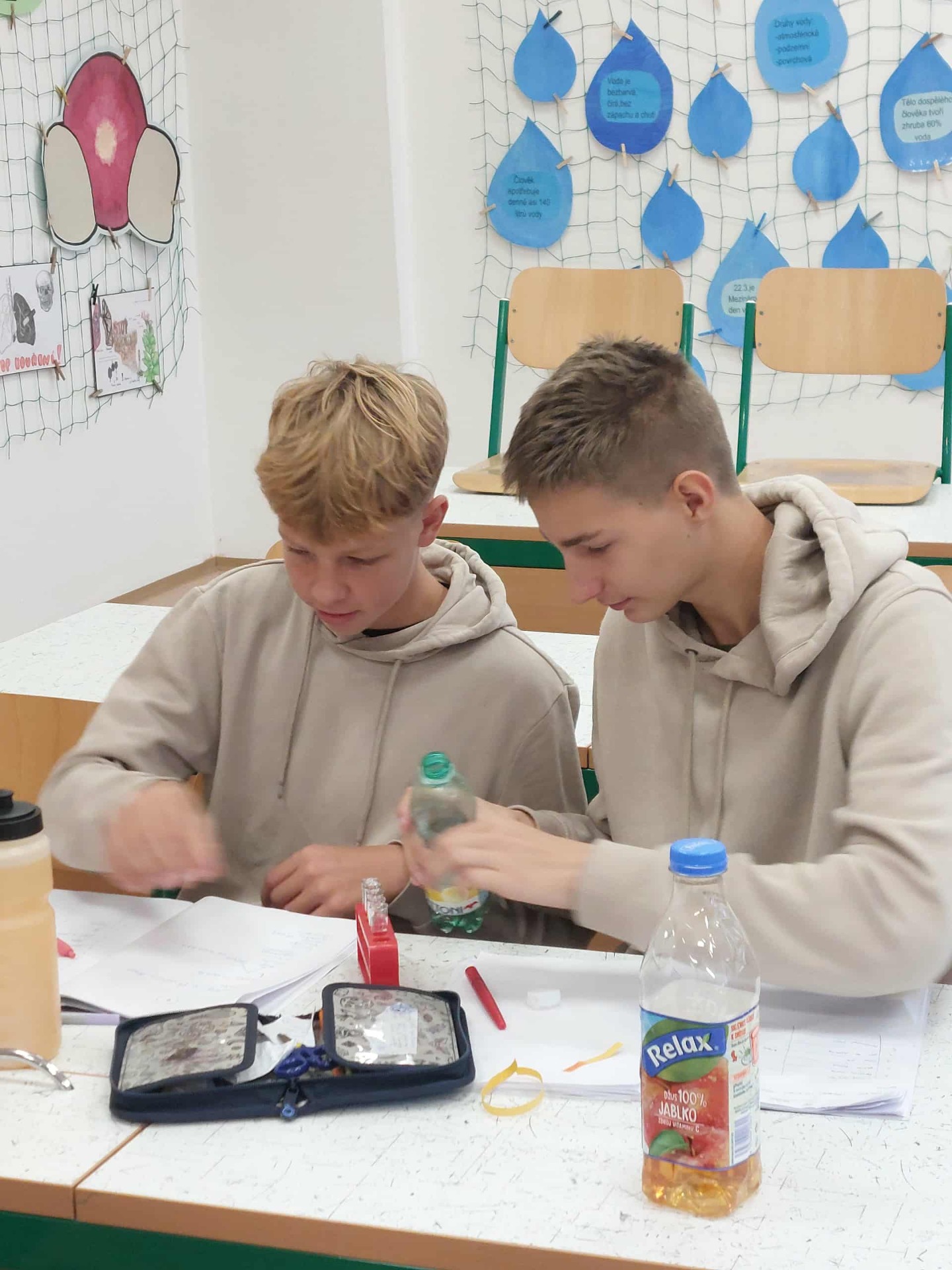 V chemii se žáci devátých tříd zabývají kyselostí a zásaditostí vodných roztoků. Vyzkoušeli si měření pH různých druhů nápojů, kosmetických přípravků a potravin. Zjistili, které nápoje náš organismus okyselují a proč mají sprchové gely neutrální nebo mírně kyselé hodnoty pH. Někteří žáci si připravili zajímavé vzorky, jako je vaječný bílek a žloutek, cukerný roztok, dezinfekci na monitor nebo roztok karbonátu sodného.