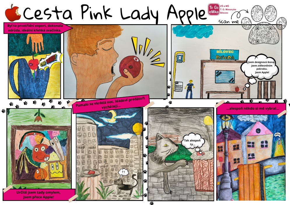 Pro svou práci si žáci zvolili originální a hravý koncept. Příběh jablka, které se po nakousnutí začne považovat za ikonu, přesto však skončí v odpadkovém koši. K plakátu vytvořili také tematickou píseň, a to s pomocí umělé inteligence v programu Suno.
