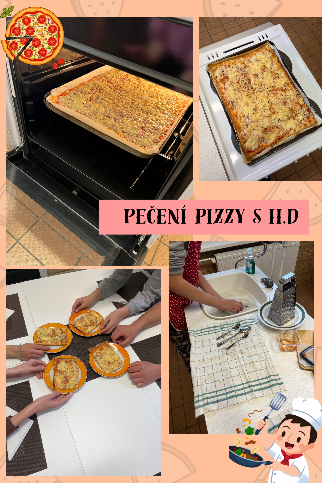 V rámci předmětu Člověk a svět práce ve II. D je také plněn okruh Příprava pokrmů. Na přání žáků jsme společně upekli DOMÁCÍ PIZZU – Margheritu s rajčatovou omáčkou, sýrem a šunkou. Součástí výuky je také důsledný úklid kuchyně. A. Kleslová, vyučující ČP