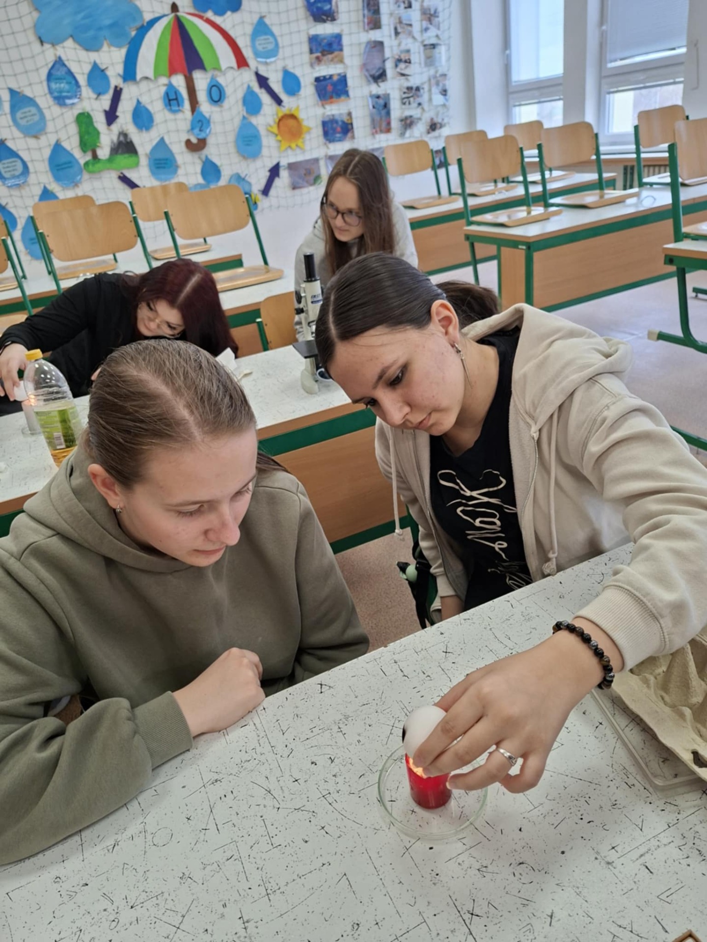 V březnovém setkání jsme se věnovali jak jinak než Velikonocům. S vejci jsme si vyzkoušeli hned několik pokusů. Nejprve jsme zkoumali vliv hustoty solného roztoku na vznášení vajíčka. Poté jsme vajíčko pomocí svíčky očernili a vložili do vody. Mastné saze vodu odpuzují, kolem vajíčka vznikla tenká vzduchová vrstva a díky odrazu světla krásné stříbrné zbarvení. Dále jsme se zabývali stavbou vejce a pozorovali jednotlivé struktury pod mikroskopy. Nakonec jsme si nabarvili vyfouknutá vejce přírodním způsobem, a to v roztoku červeného zelí pro zisk fialového zabarvení a v roztoku kurkumy pro zabarvení žluté. A Velikonoce mohou začít! Přejeme krásné svátky a těšíme se na jarní dubnové badatelské setkání.