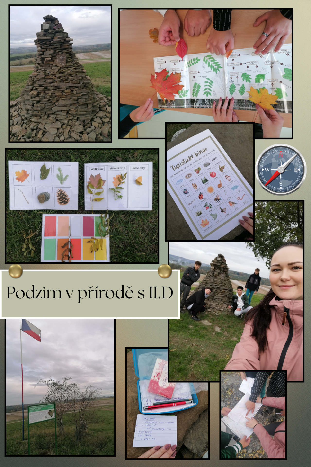 V rámci projektového dne Podzim v přírodě se žáci II. D vydali na putování krajinou s cílem dosáhnout nejvyššího bodu Bílovce – Na Výšině – kopec s 395 m n. m. Zde se nachází kamenná mohylka s nádherným výhledem do okolí, z vrcholu kopce je krásný pohled na naše město Bílovec a za ním se zvedající vrcholky Podbeskydské pahorkatiny.